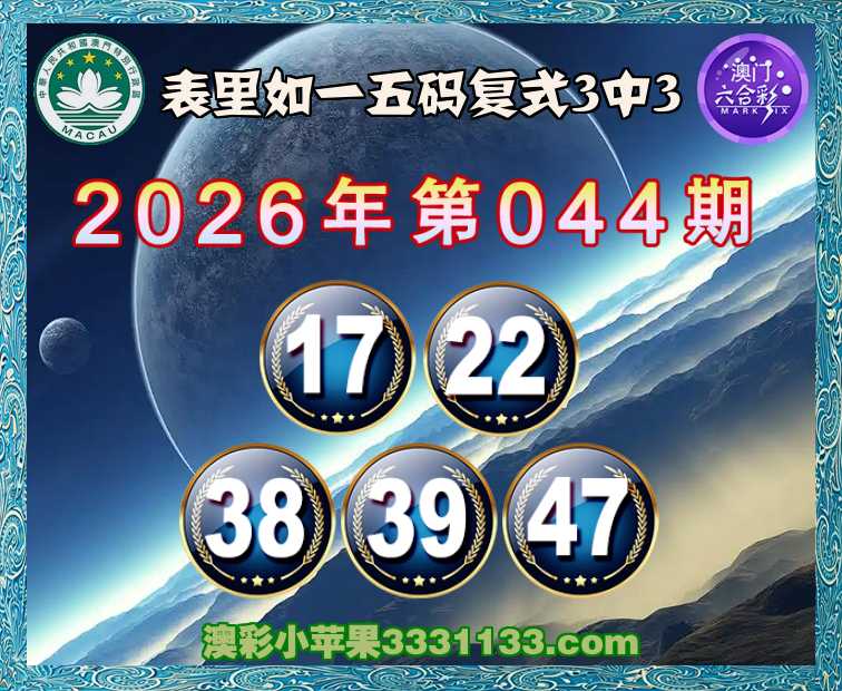 044期:【表里如一】 五码复式3中3