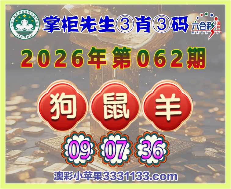 062期:《掌柜先生》 ③肖③码【狗鼠】【09.07.36】开:羊24准上榜高手