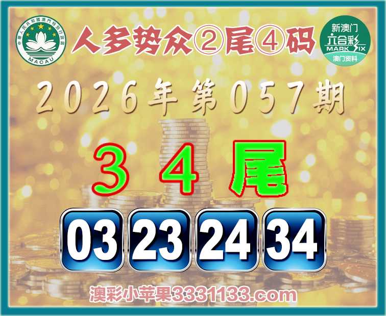 057期:【人多势众】 ②尾④码34尾主:03.23.24.34】开:23