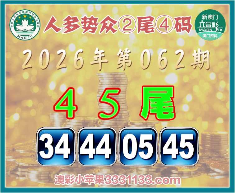 062期:【人多势众】 ②尾④码45尾主:34.44.05.45】开:24准上榜高手