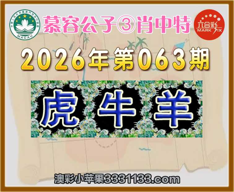 063期:【慕容公子】 ③肖中特【虎.牛.羊】开:00准