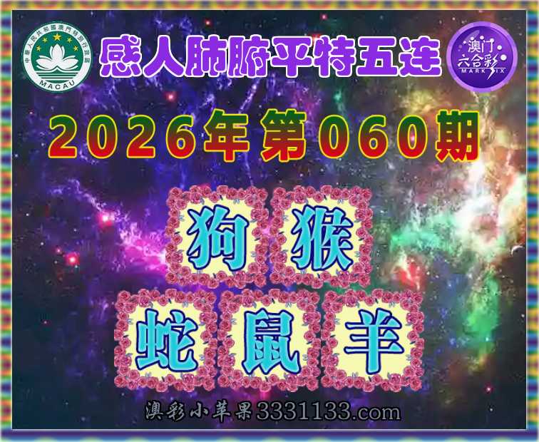 060期: 『感人肺腑』 平特五连【狗猴蛇鼠羊】开:00