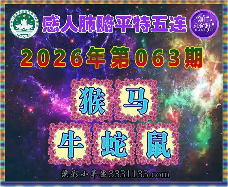 063期: 『感人肺腑』 平特五连【猴马牛蛇鼠】开:00准