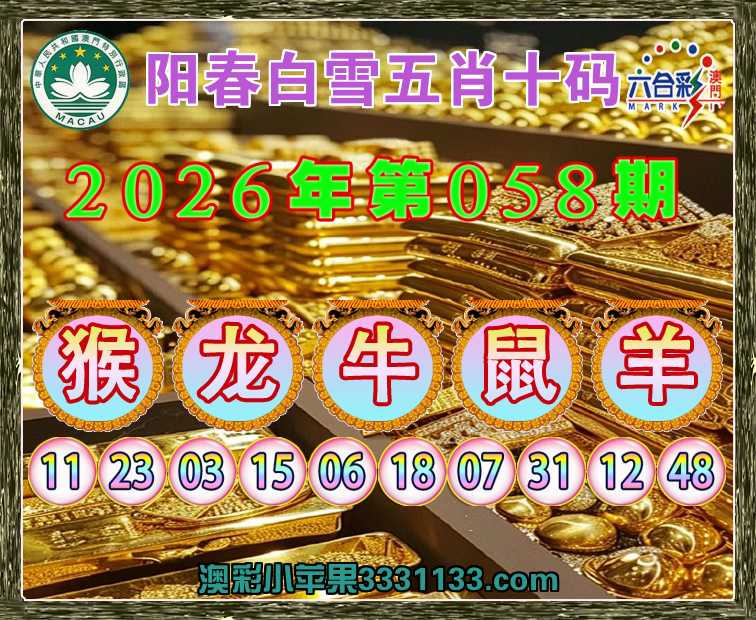 058期:『阳春白雪』 五肖十码【猴龙牛羊】开:鼠31
