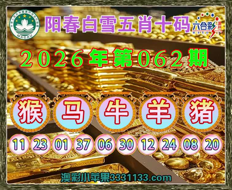 062期:『阳春白雪』 五肖十码【猴马牛猪】开:羊24准上榜高手